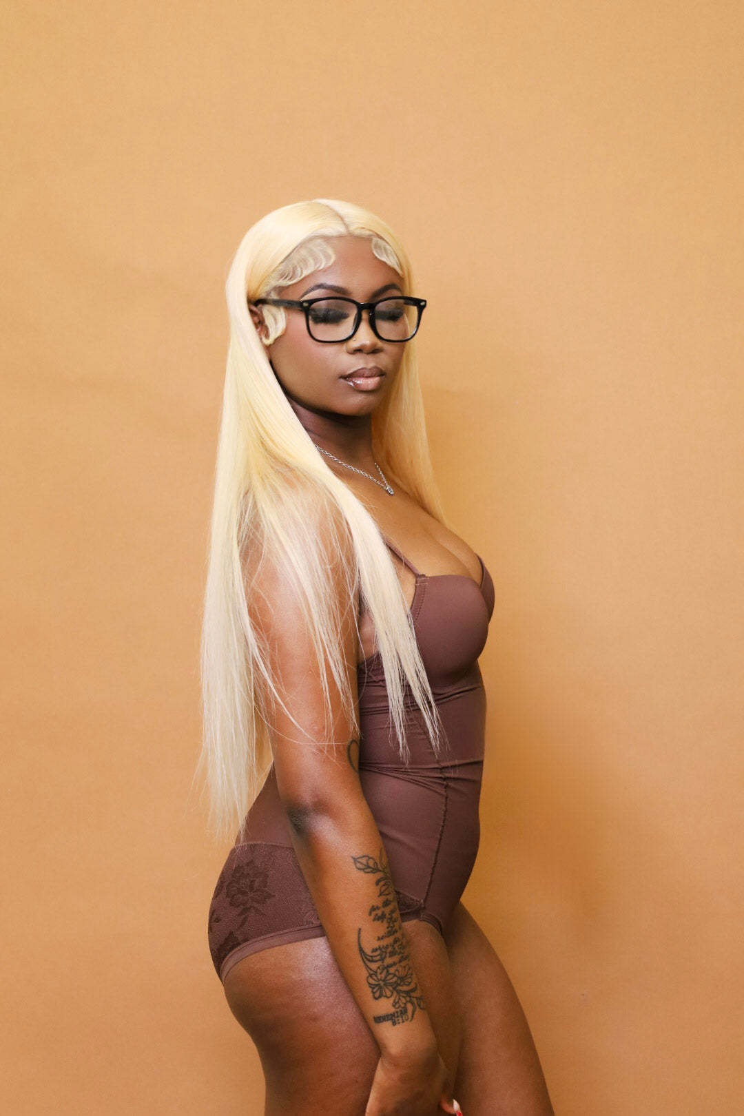 This model is showcasing the 26” 613 13x6 lace unit. Constructed from 100% human hair for an irresistibly soft and natural appearance. Featuring a true-to-length specification, this unit is suitable for customization or wearing as is.